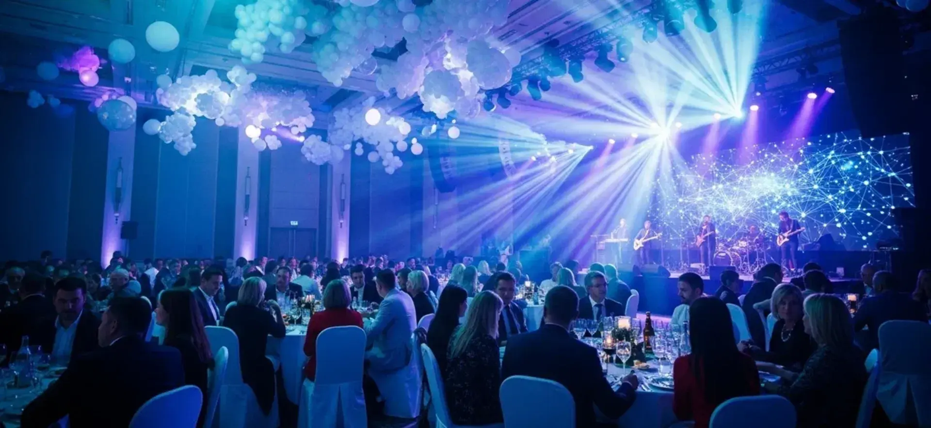 - Торжественный банкет – формат с посадкой, подачей блюд, возможностью организовать сцену, музыкальное сопровождение, выступления и церемониальные моменты.