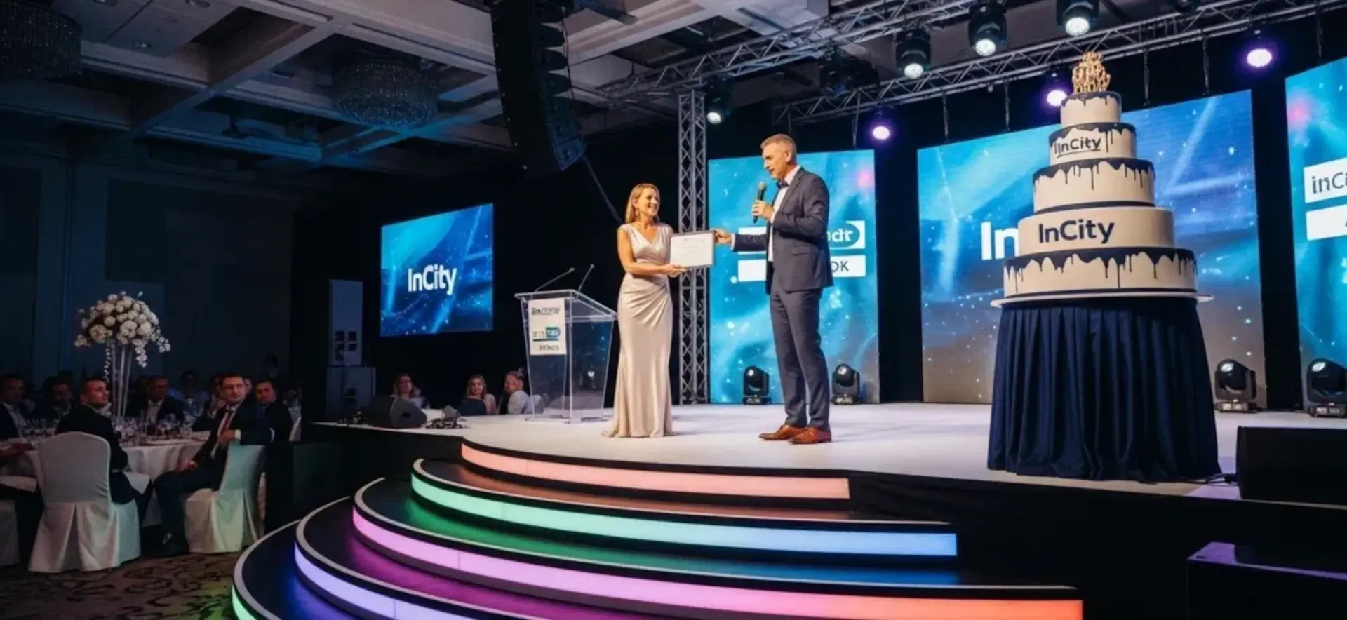Декор проектируется индивидуально: от общей стилистики до нюансов приглашений. Например, мы создаем отдельные фотозоны на день рождение компании, которые подчеркнут тематику события – будь то визуальные цитаты из бренд-бука или легкие аллюзии на выбранную концепцию вечера. Предусматривается и фирменный мерч – аксессуары, знаки отличия, сувениры. Если в числе гостей – партнеры и клиенты, особое внимание уделяется полиграфии: пригласительные оформляются на дизайнерской бумаге в единой стилистике.