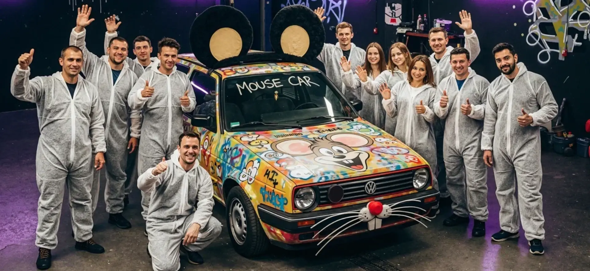 - Молодежные вечеринки, выпускные, мальчишники: здесь можно дать участникам больше свободы. Роспись в стиле граффити, дерзкие фразы, «украденный» автомобиль с подписями на капоте — все по согласованию.