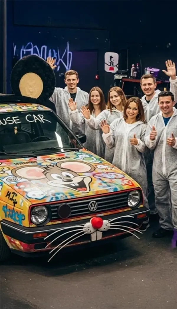 - Для детских мероприятий мы предлагаем отдельный сценарий: роспись игрушечных автомобилей или раскрашивание небольших деталей настоящей машины. Используются только безопасные, легко смываемые материалы. Визуально это ничем не уступает взрослому формату.