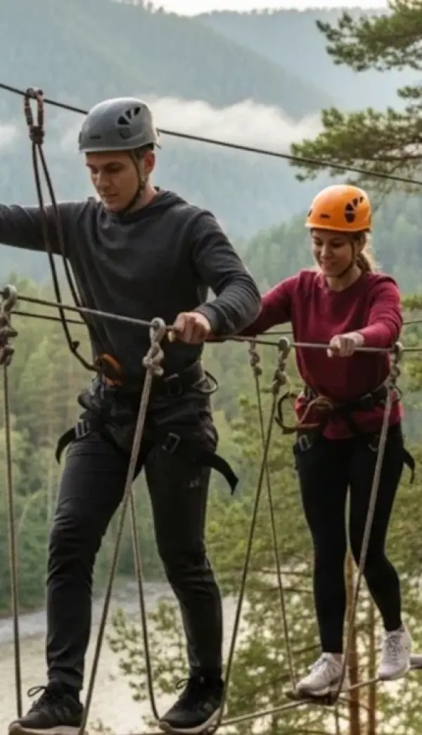 - Специализированные веревочные парки. Профессионально оборудованные площадки с различными уровнями сложности, полностью соответствующие требованиям безопасности.