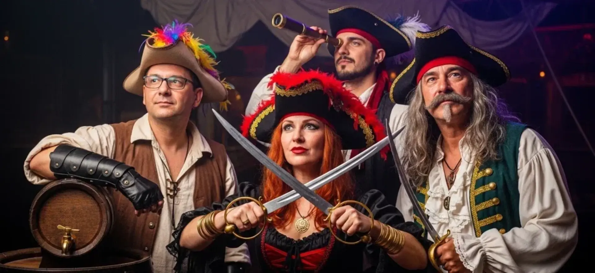 Свяжитесь с нами – и мы организуем как корпоратив для компании, так и создадим сценарий пиратской вечеринки для взрослого дня рождения. Это будет эксклюзивное мероприятие, которое надолго останется в памяти каждого участника.